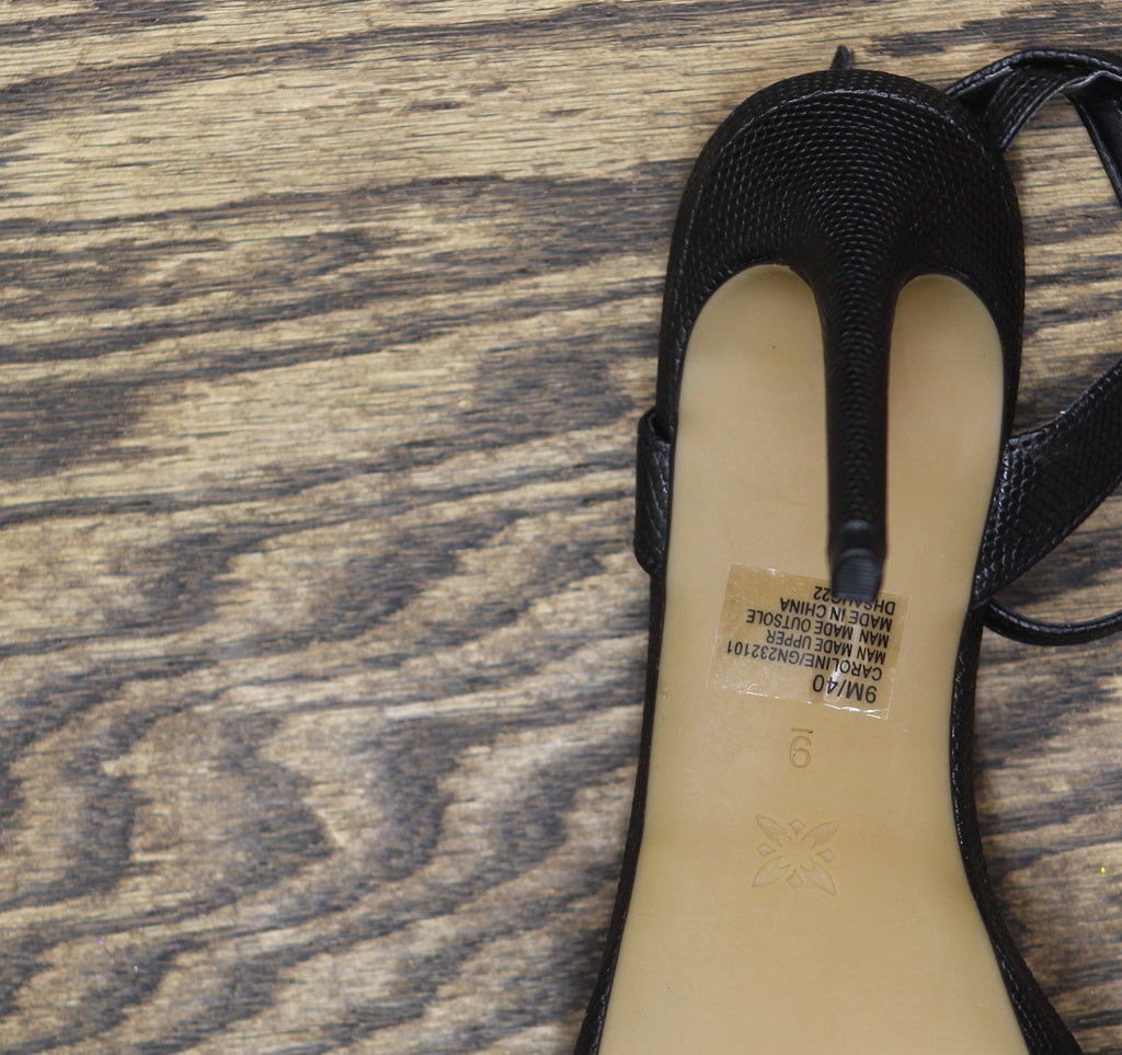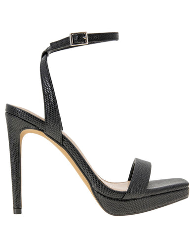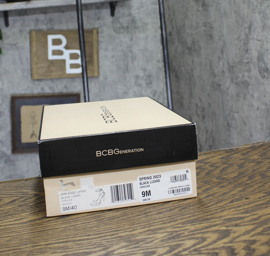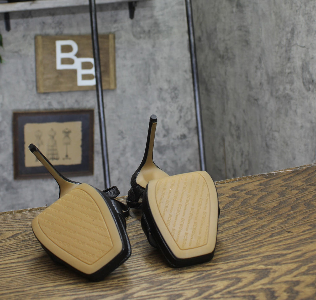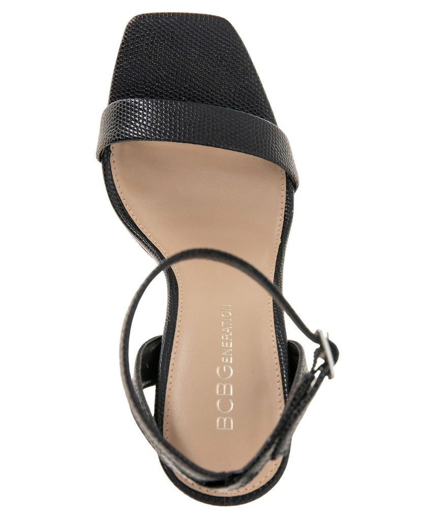 The BCBGeneration Caroline is a modern take on a platform sandal with an square toe. Features Heel height- 4.0", platform- 0.25", stiletto heel Shoe width- medium Entry details- adjustable ankle strap Padded insole with memory foam and green latex, flexible outsole Synthetic upper, lining and outsole Synthetic Upper Spot Clean Imported