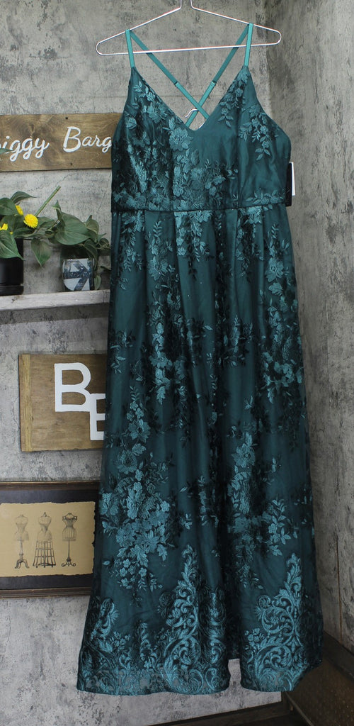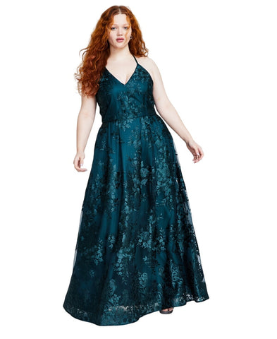 Unleash your inner floral enchantress in this Bcx trendy plus size gown adorned with intricate embroidery, featuring a strappy back that transforms any event into your own fashionable garden party of curves and charm.