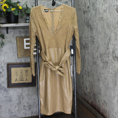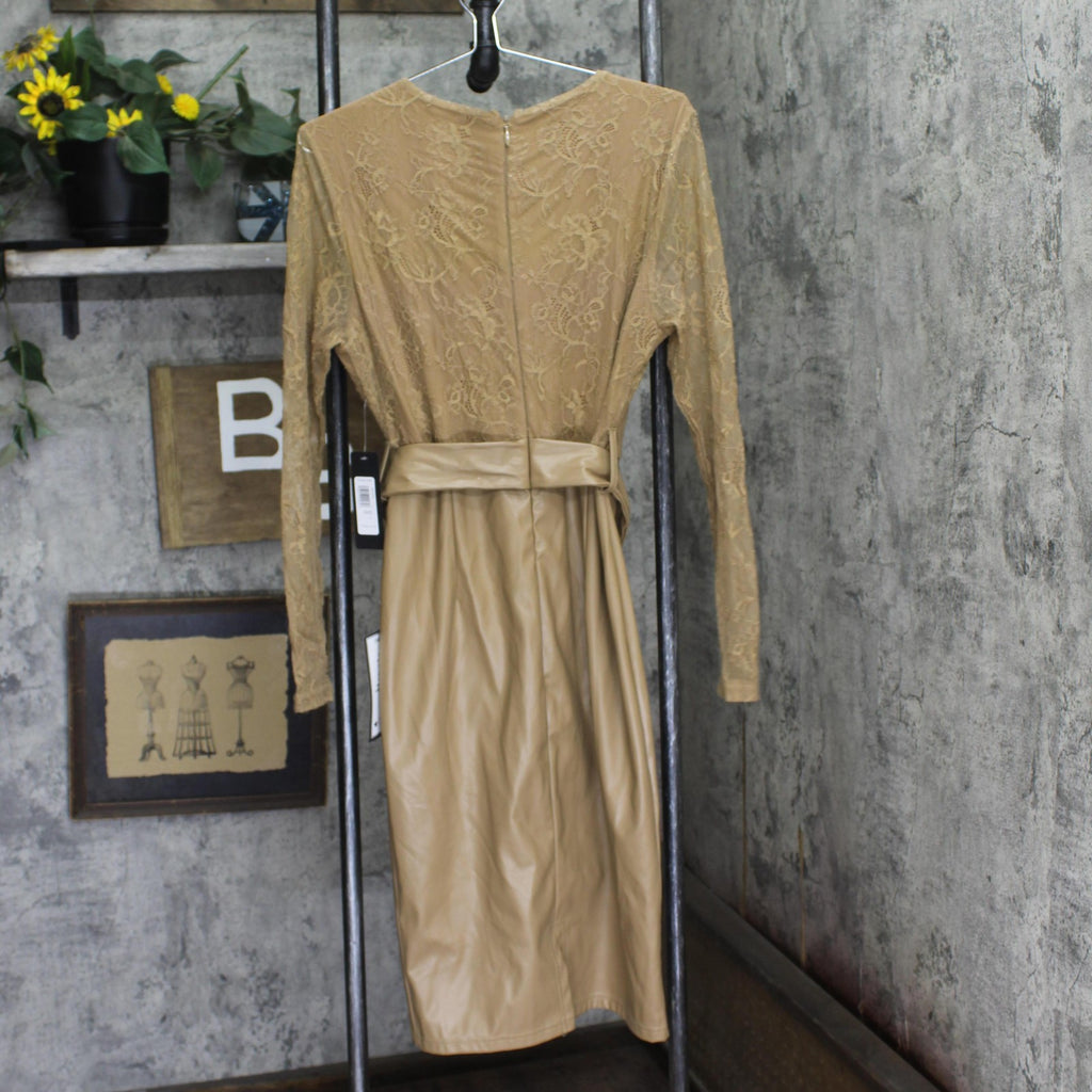 Leather Composition: 50% Polyurethane, 50% Polyester; Lace: 80% Nylon, 20% Spandex; Lining: 95% Polyester, 5% Spandex Care Instructions: Dry Clean Only Origin: Imported Shoulder Length: 42.5 Inches