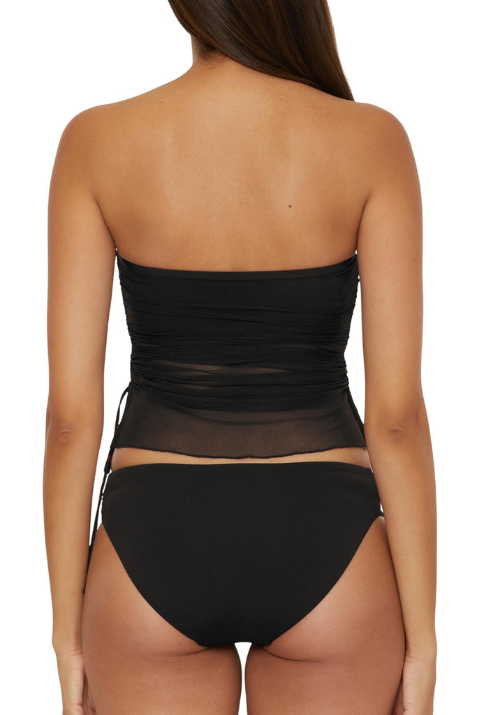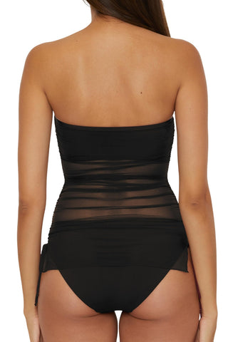 [ High-Quality Fabric ] – Made from a soft blend of 92% Polyester and 8% Spandex, this bandeau tankini top combines comfort with elasticity, providing a flexible fit that moves with you. [ Adjustable Side Ties ] – Shirred tunnels at the side seams with adjustable spaghetti ties allow you to modify the length and fit of the tankini, ensuring a flattering look for various body shapes. [ Supportive Features ] – Features a drop shelf bandeau bra with removable soft cups for adjustable support and coverage, ideal for big busts, offering both style and comfort. [ Elegant Design Details ] – A cut-out front neck and sheer stretch mesh overlay with side slits add a modern and airy feel to this tankini, making it perfect for beach outings or poolside relaxation. Recommended with cold water to maintain the quality. Avoid bleach, tumble drying, and ironing to preserve the fabric's texture and color.