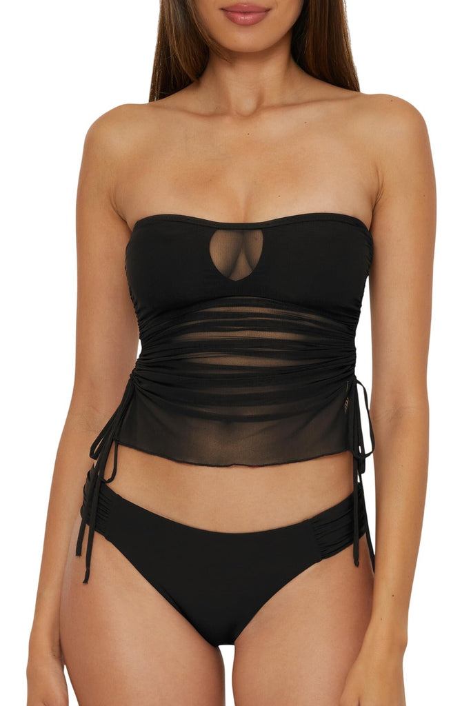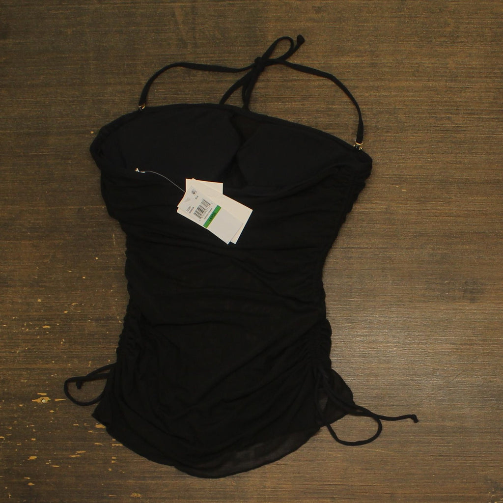 [ High-Quality Fabric ] – Made from a soft blend of 92% Polyester and 8% Spandex, this bandeau tankini top combines comfort with elasticity, providing a flexible fit that moves with you. [ Adjustable Side Ties ] – Shirred tunnels at the side seams with adjustable spaghetti ties allow you to modify the length and fit of the tankini, ensuring a flattering look for various body shapes. [ Supportive Features ] – Features a drop shelf bandeau bra with removable soft cups for adjustable support and coverage, ideal for big busts, offering both style and comfort. [ Elegant Design Details ] – A cut-out front neck and sheer stretch mesh overlay with side slits add a modern and airy feel to this tankini, making it perfect for beach outings or poolside relaxation. Recommended with cold water to maintain the quality. Avoid bleach, tumble drying, and ironing to preserve the fabric's texture and color.