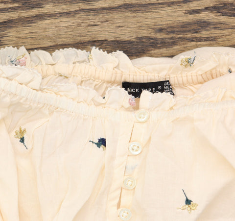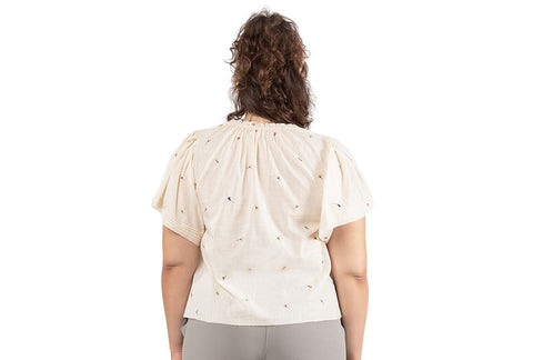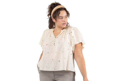 Crafted from comfortable cotton and dotted with a dainty floral print, Black Tape's flutter-sleeve shirt brings Spring with you wherever you go.