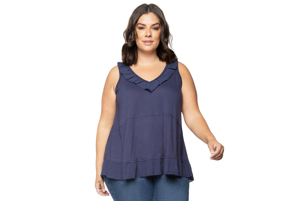 Ruffle up your look with this plus size babydoll tank top from Black Tape.