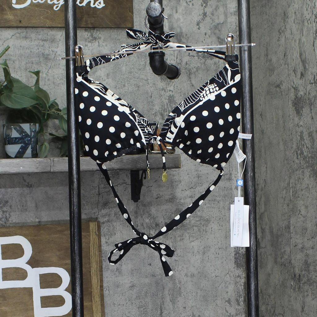 Dive into a fresh beach look with this triangle bikini top from Bleu by Rod Beattie. Features Removable cups Ties at back; halter straps V-neck with tie Lined Shell: 75% nylon, 25% spandex; lining: 87% nylon, 13% spandex Hand wash Imported
