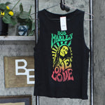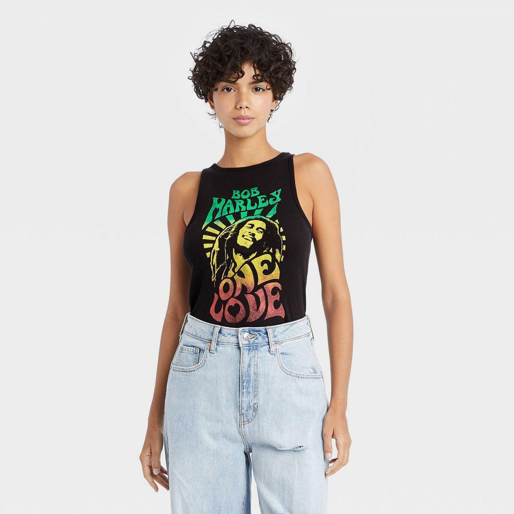 This sleeveless tank top in a lovely black color makes a versatile staple to pair with a range of casual-wear. Made from soft fabric for comfortable wear from day to night and season to season. Pair this Women's Bob Marley One Love Ribbed Graphic Tank Top with jeans, shorts or wide-leg pants to bring versatile style to your everyday attire, then layer it on with a jacket when the cool weather rolls in.