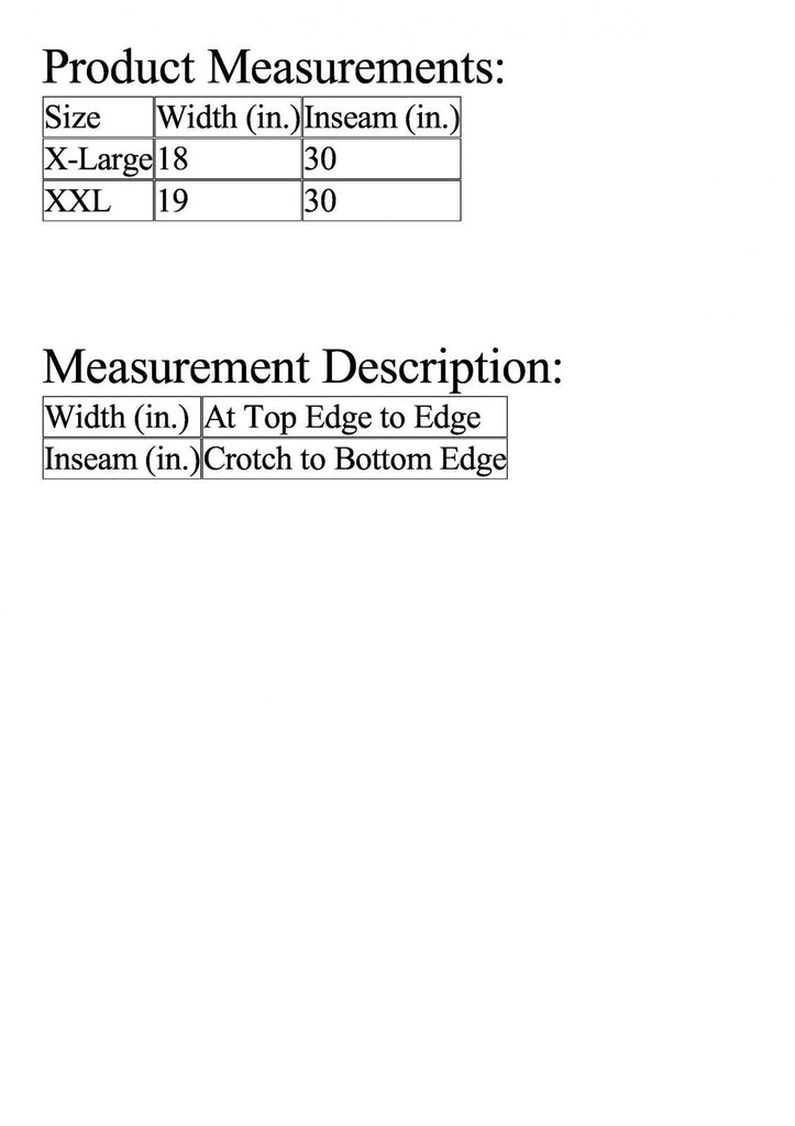 | Size | Width (in.) | Inseam (in.) |