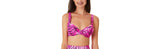 A bright spin on animal-inspired striping the California Waves Topaz Tiger bralette bikini top features underwire support and adjustable straps.