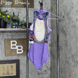 Mock turtleneck leotard featuring teardrop opening back with printed mesh panel. Snap closure around the neckline ensures a secure fit for any performance. Wear alone or pair with matching wrap skirt. Available in both adult and tween sizing. A great collection for contemporary and ballet styles, whether you're rehearsing in the studio or competing on stage