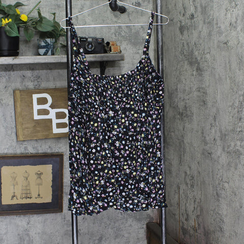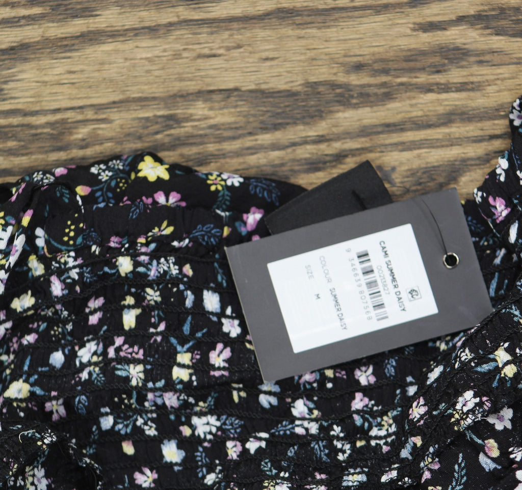 This sweet summery cami is covered in delightful blooms with a twisted tie neck and slinky adjustable straps. V-neck Adjustable straps 100% viscose Hand wash, dry flat Imported