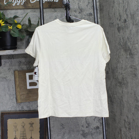 CHAMPION YOUR SPORTSWEAR Designed to deliver style and durability, this women's t-shirt has casual comfort on lock. The block-style Champion logo with the 'Sportswear' banner is boldly displayed, reflecting Champion's athletic heritage, while the C logo on the sleeve serves that 100-year-old brand pride. Crafted with a quality ribbed neckline and sturdy double-needle construction throughout, this tee holds up no matter where the day takes you. With a standard fit that offers ample comfort, this