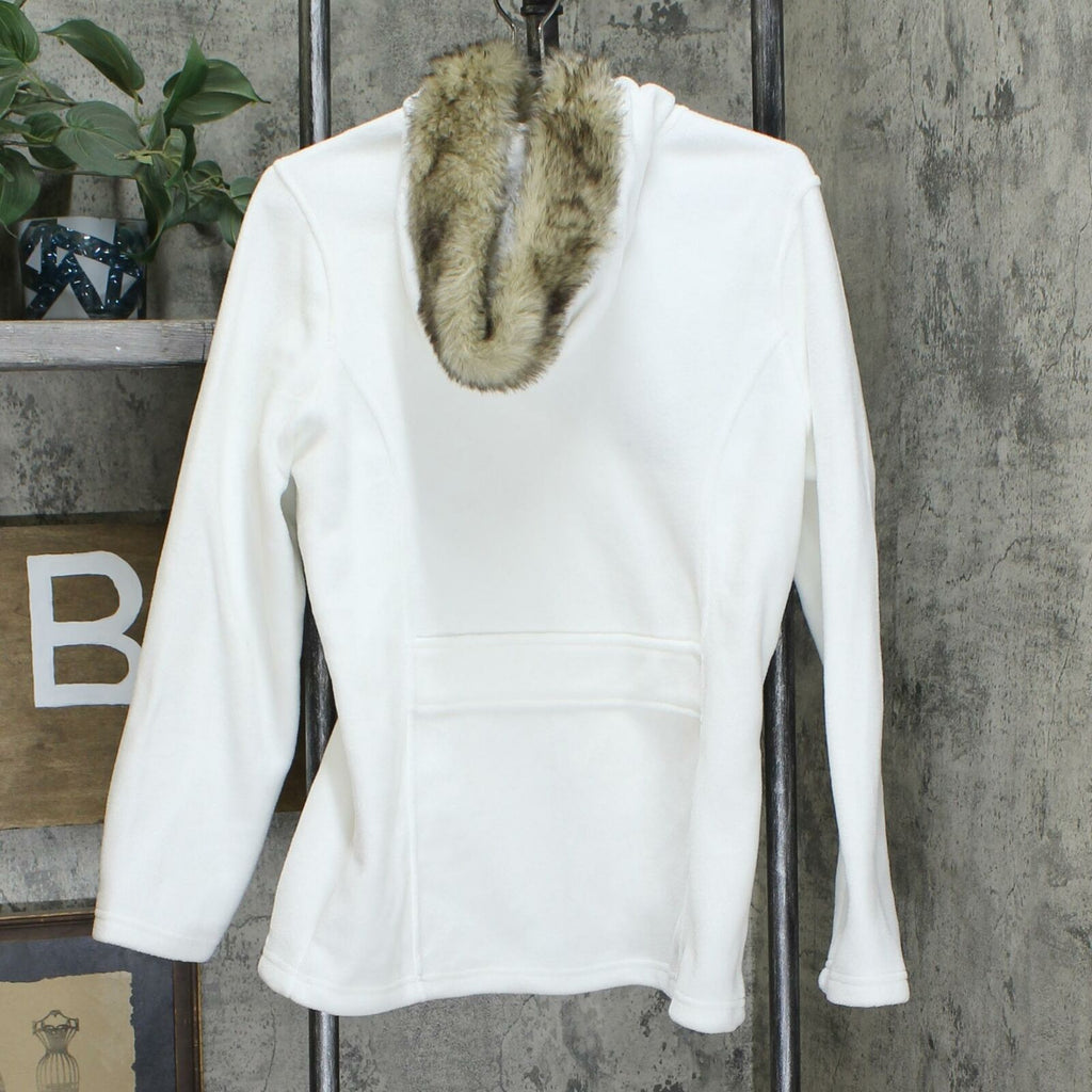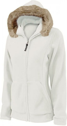 A chic and stylish necessity for any woman's wardrobe. Faux fur trimmed hood and unique back detail. Anti-pill evolux filament fleece is made from a very fine yarn for extra softness.