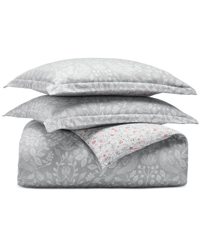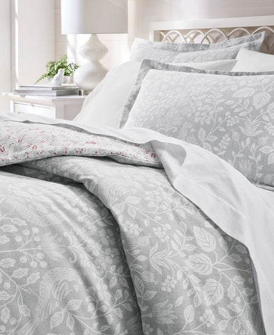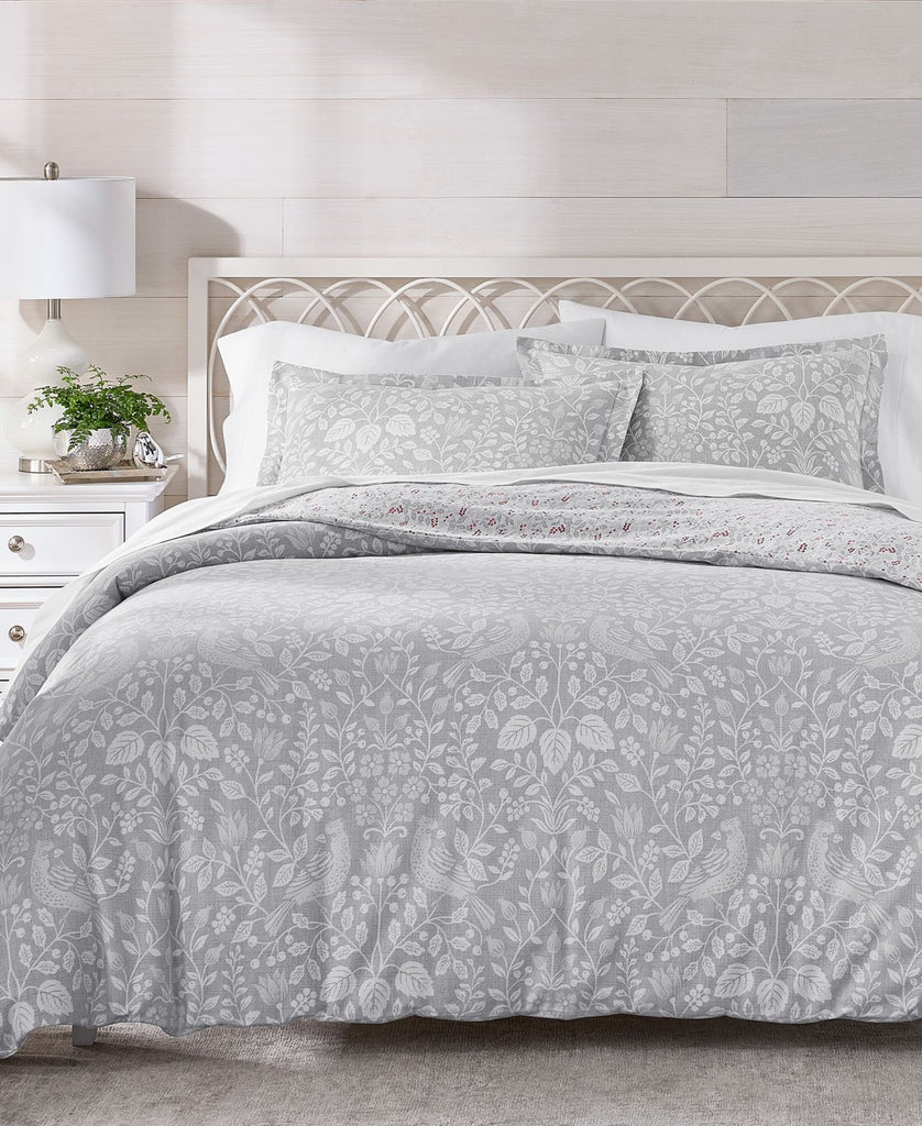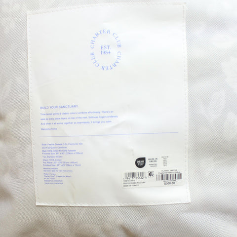 Embrace classic winter style with the Festive Damask comforter set from Charter Club. Fabricated in brushed cotton flannel for comfort and coziness. Features Approx. dimensions: full/queen comforter: 90" x 96"; two standard shams: 20" x 26" each Medium warmth Reverses from tonal print to berry motifs Exclusive Face: 100% cotton; fill: 100% polyester Machine wash Imported