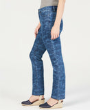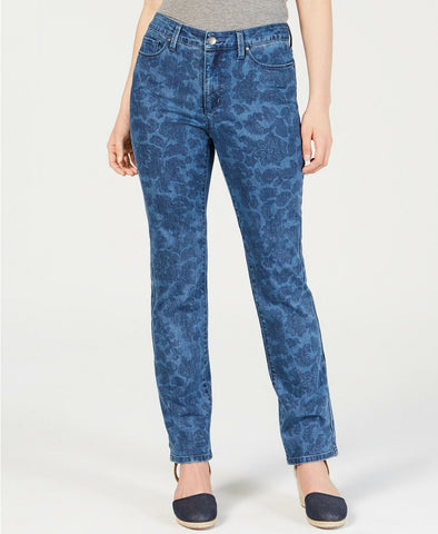 Charter Club's straight leg jeans are styled from a floral-print denim with a tummy control panel, for a smooth and fresh look.