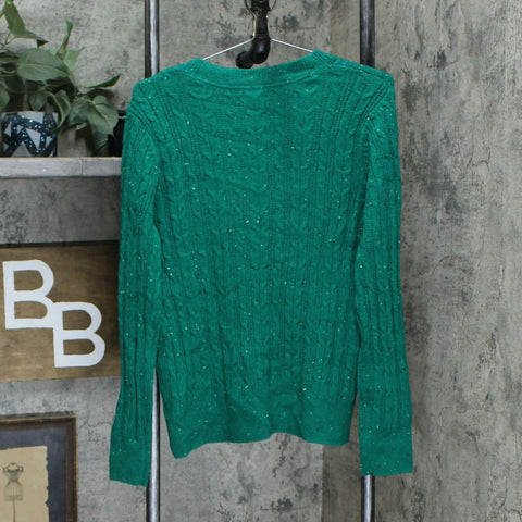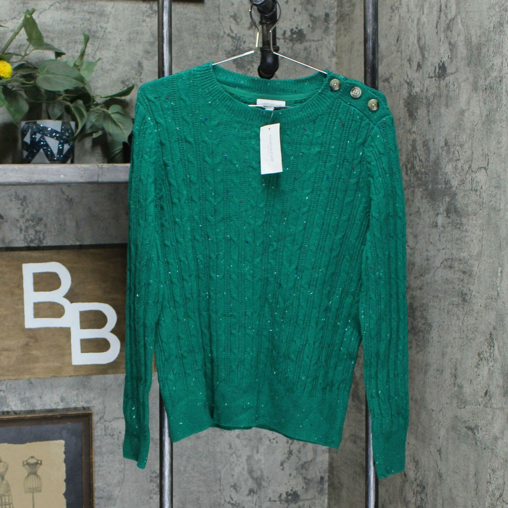 A mix of donegal details and classic cable knit create a cozy look with this petite pullover sweater from Charter Club.