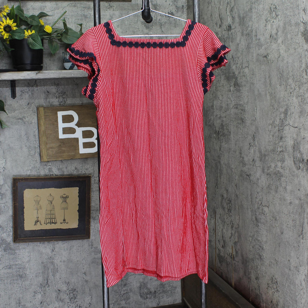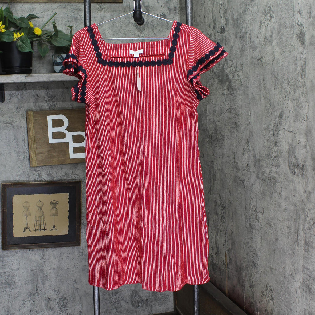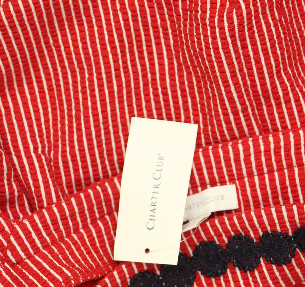 Charter Club Womens Knit Crochet Trim Flutter-Sleeve Dress Red Barn Combo L