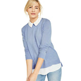 Layer like a pro with Charter Club's cashmere sweater. This crewneck features attached shirting details for a one-and-done look.