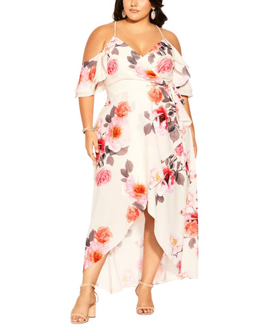 City Chic Womens Trendy Plus Size Bashful Maxi Dress Bashful Bloom Pink 16W