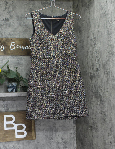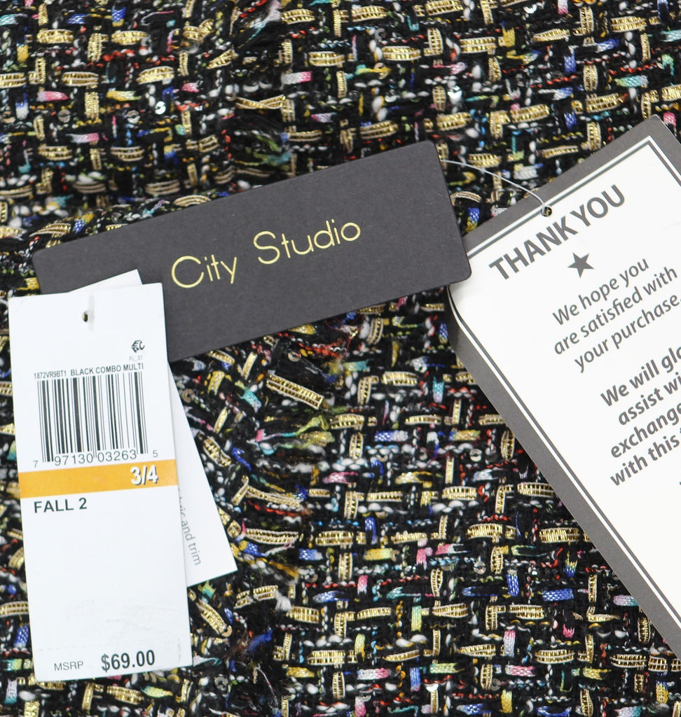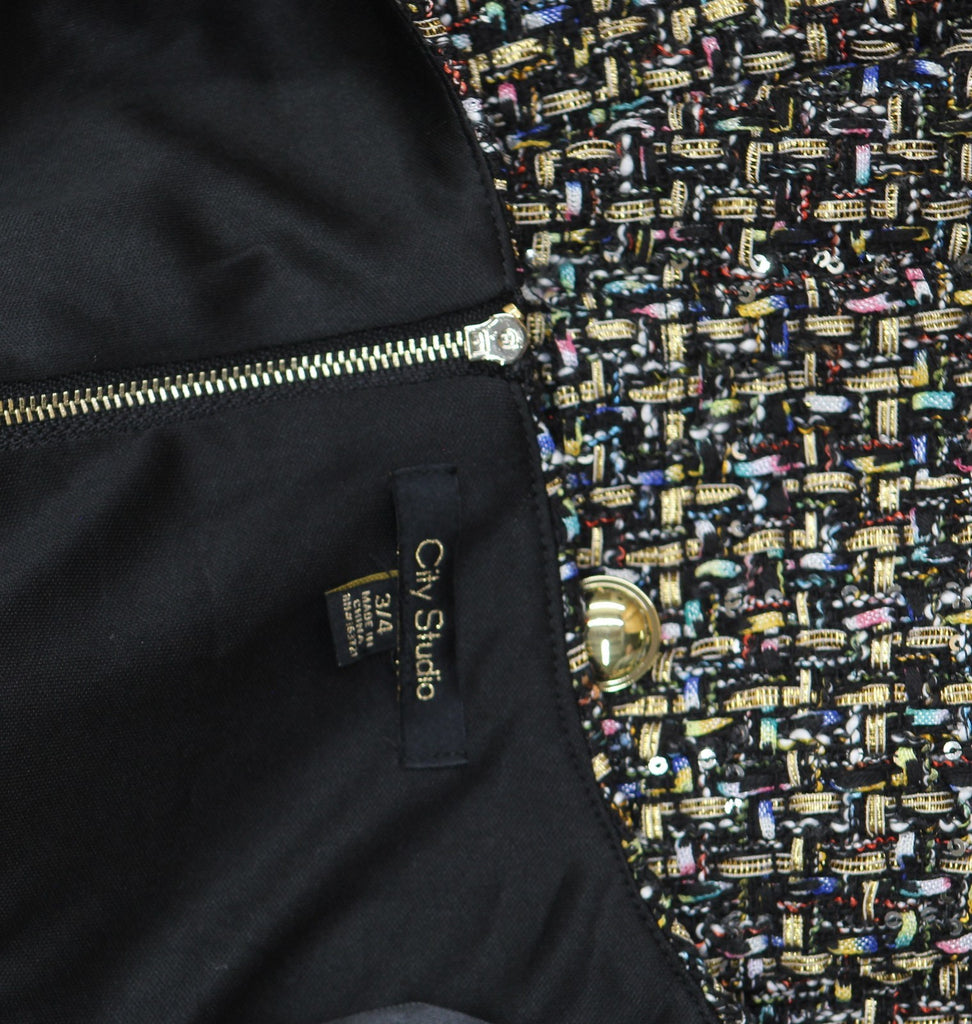 A little shimmer at every angle in this tailored sheath dress from City Studios designed with cute fringe and two pockets. 34" long from center back neck to hem. Length is based on size 7/8 and varies 1/2" between sizes Tailored fit through the chest, waist, and hips; sits close to the body