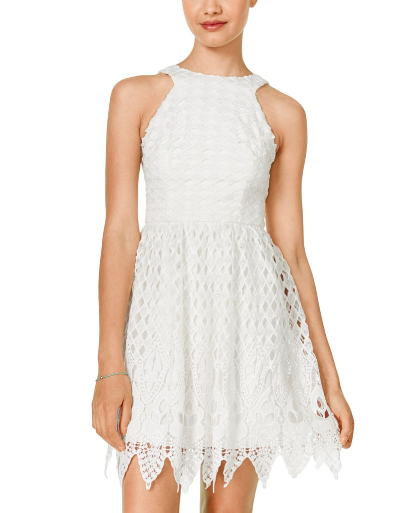 City Studio Junior Sheath Crochet Lace Skater Dress 6642GX1AT1 White 5