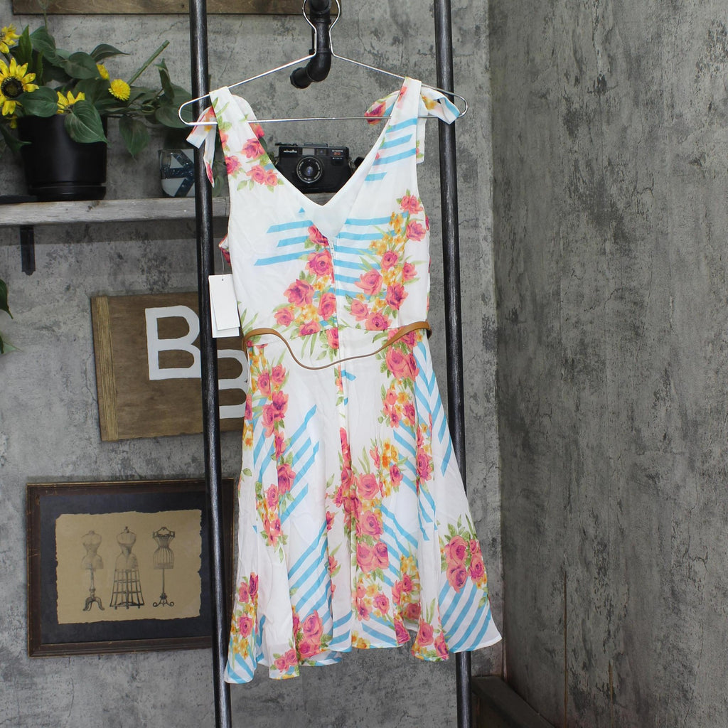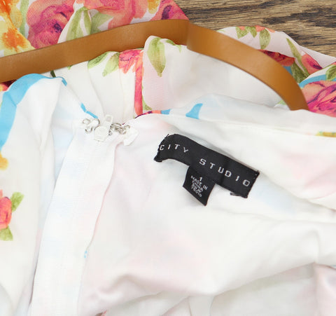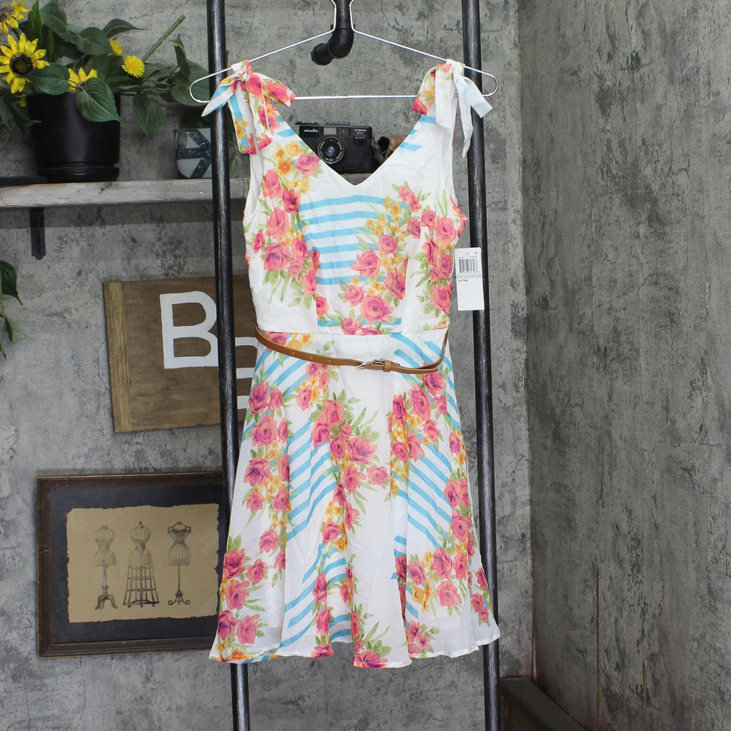 City Studio Juniors Belted Floral-Print Fit & Flare Dress 3810-0025 Blue Multi 1