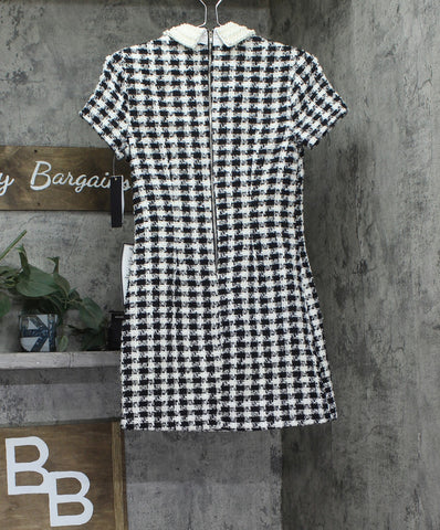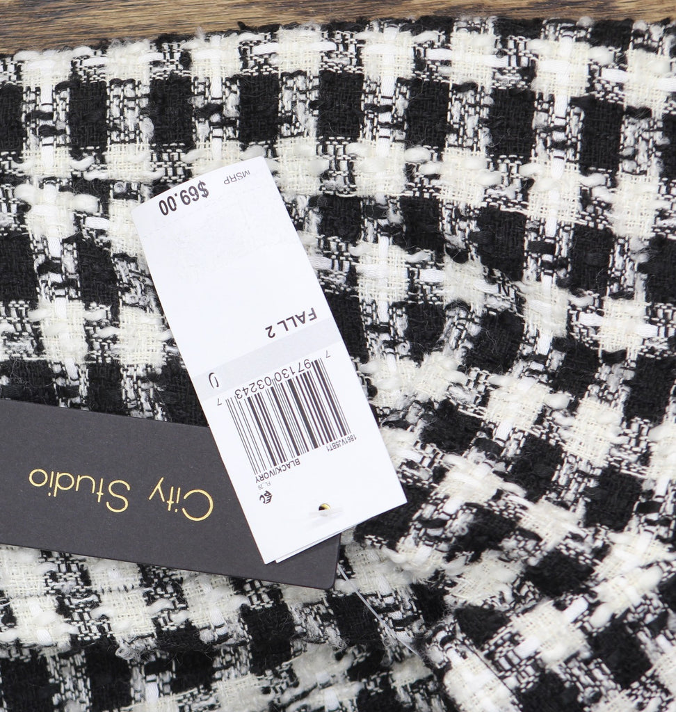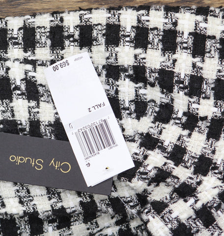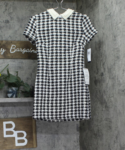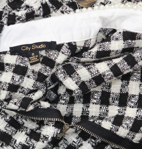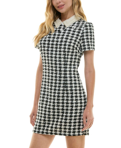 City Studio Womens Tweed Pearl Embellished Collar Cocktail Dress Black / White 0