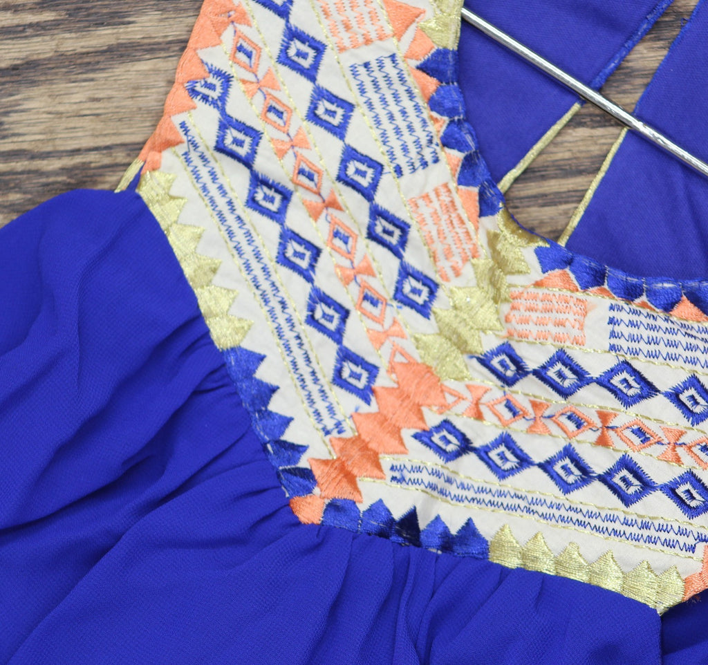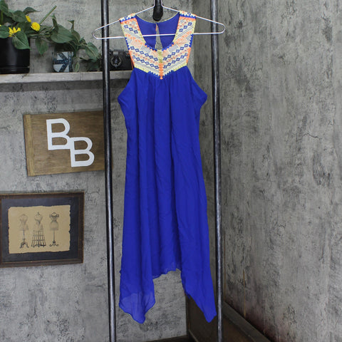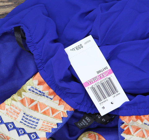 City Studios Juniors Embroidered Handkerchief-Hem Shift Dress 2XS Blue