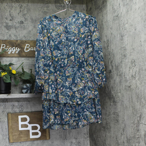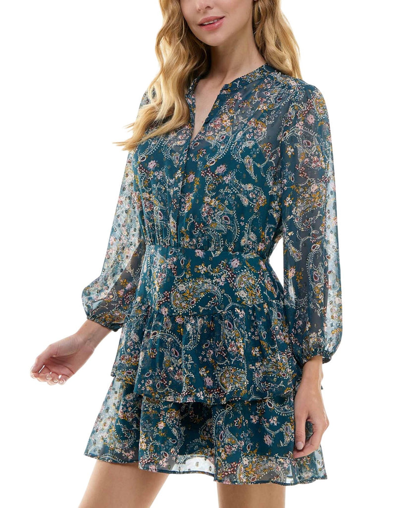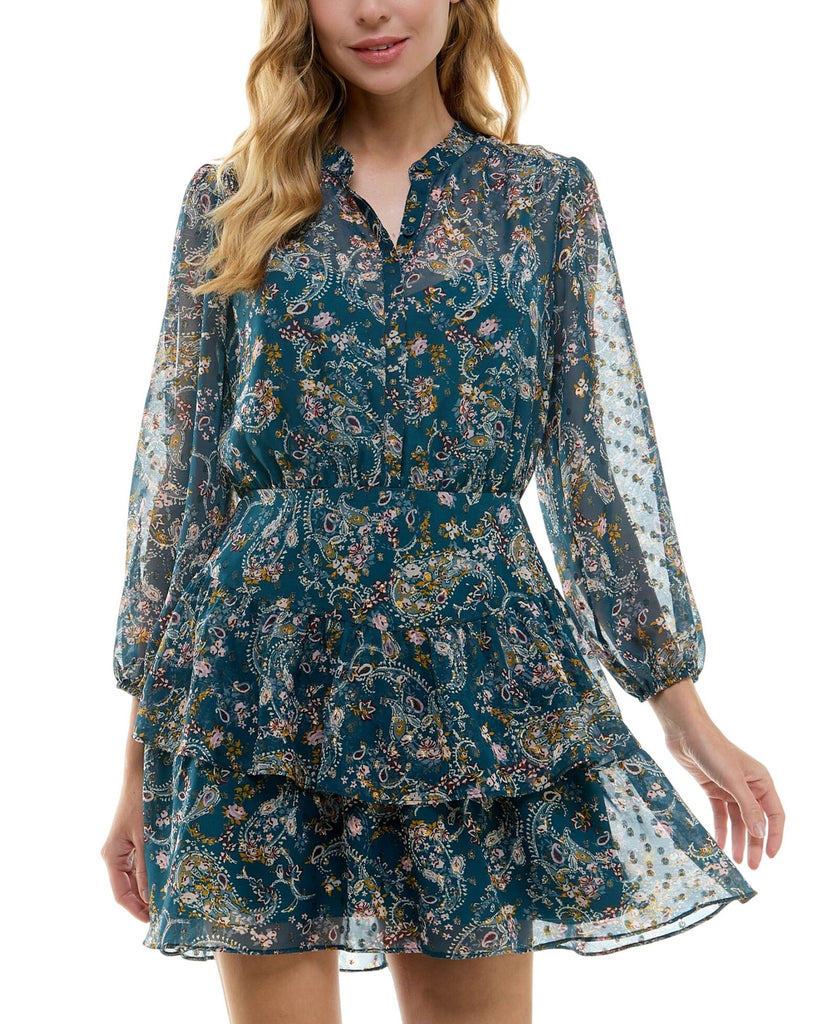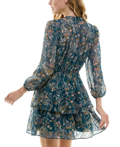 City Studios Juniors Tiered Chiffon Fit & Flare Dress Teal Blue / Rust XL