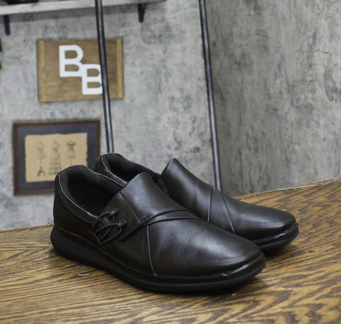 Clarks Womens Artisan Pull On Loafers Black Leather 9N