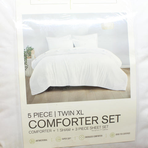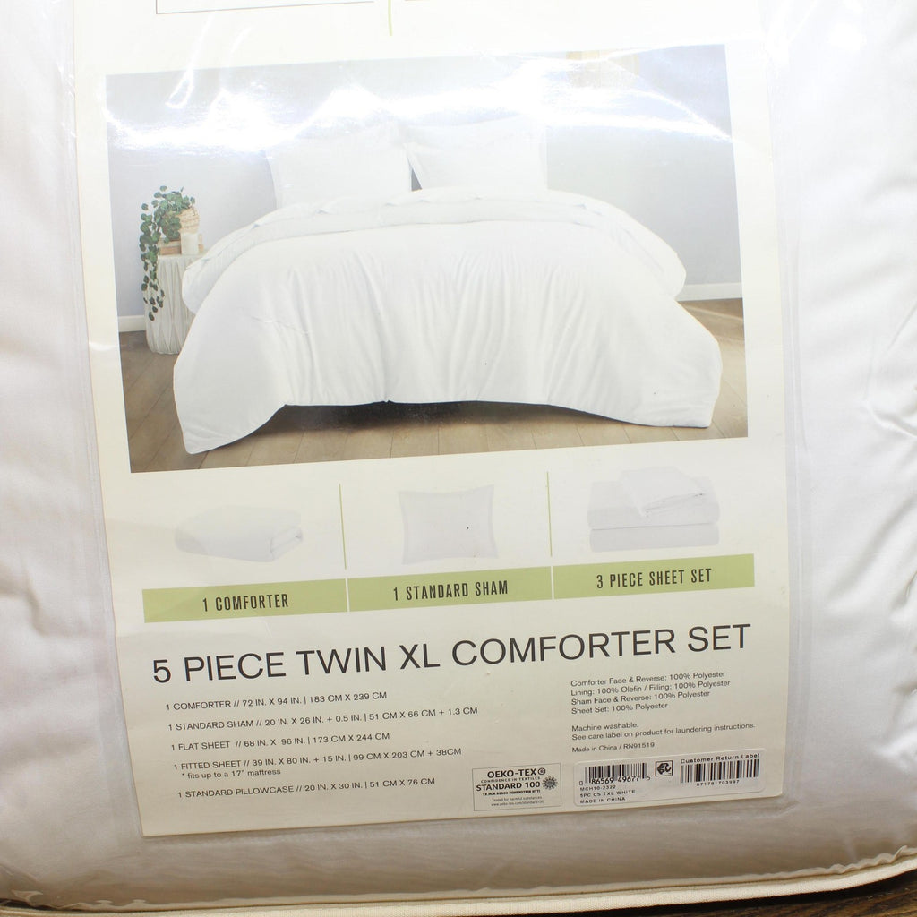 Includes 5 pieces. 1 comforter, 1 flat sheet, 1 fitted sheet, 1 sham, 1 pillowcase. Refresh any bedroom's look and feel with these Clean Spaces comforter sets, featuring over-sized comforters, matching shams and super-soft sheets in a soothing contemporary tones.