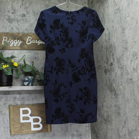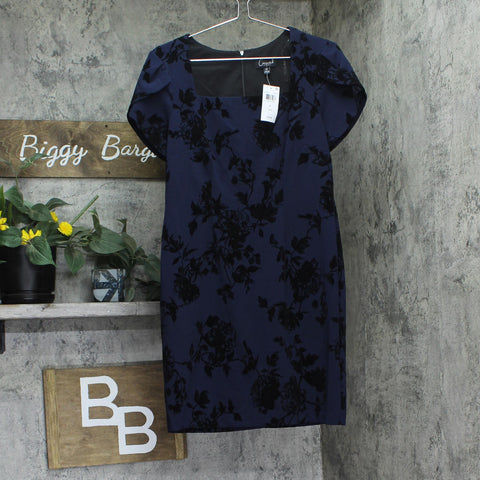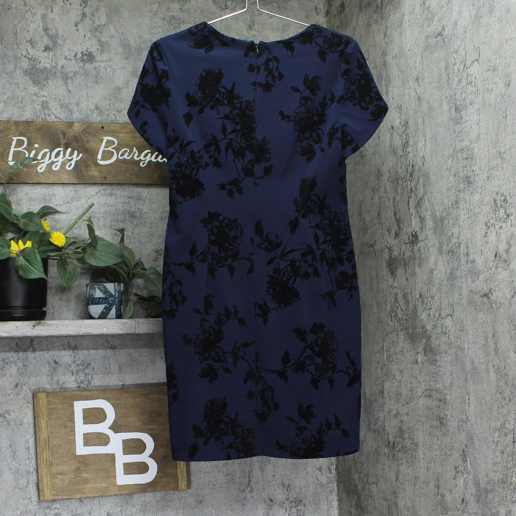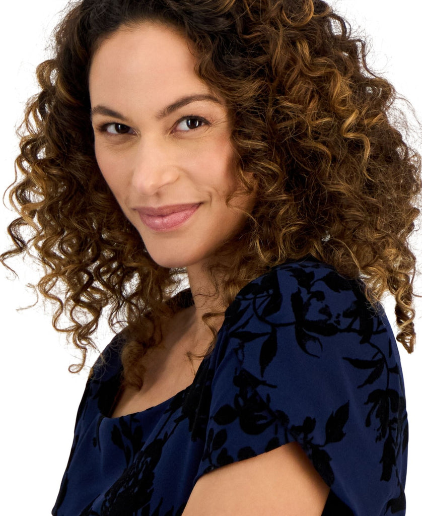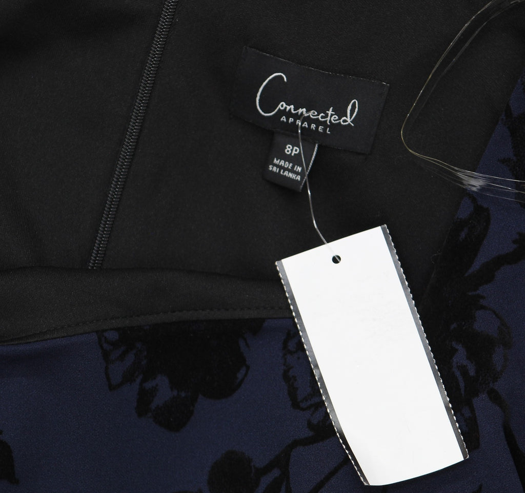 Connected Apparel Petite Square-Neck Flocked Sheath Dress Midnight Blue 8P