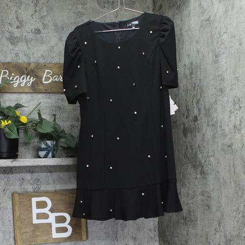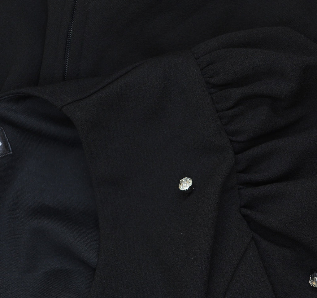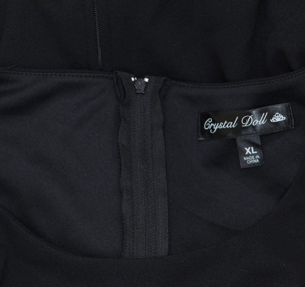 Crystal Doll Juniors Puff-Sleeve Rhinestone Dress CIZ12525 Black XL