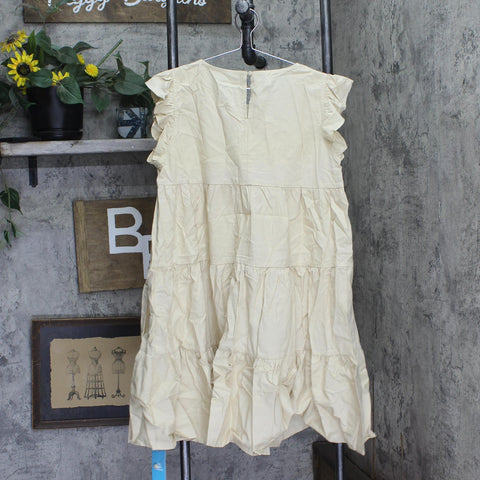 Cupshe Flutter Sleeve Paneled Skirt Mini Beach Cover Up Dress Beige Brown L