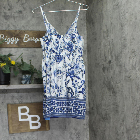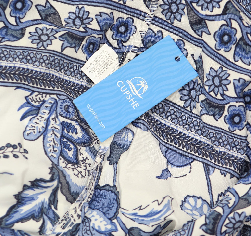 Cupshe Womens Floral Sleeveless V-Neck Mini Beach Dress Blue White Multi S