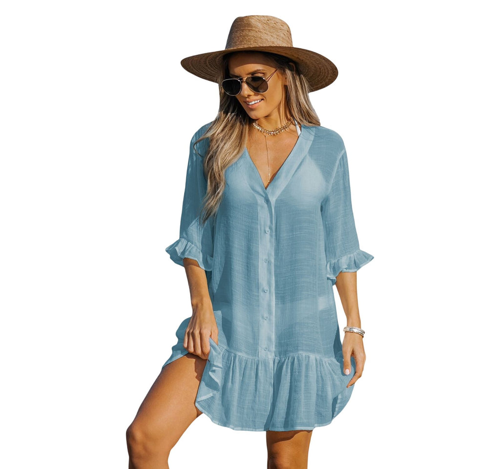 Enjoy a beach life in style with this women's Short Sleeve Mini Length Cover-Up Dress from Cupshe. FIT & SIZING: 34 1/2-in. length from shoulder to hem. FABRIC & CARE: Rayon, polyester, Hand wash, Imported.