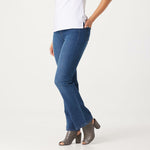 As effortless as a leisurely stroll and as versatile as it gets -- these jeans pull on easily and fit fabulously with a slight boot-cut shape and five-pocket design. From Denim & Co. Fashions.
