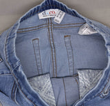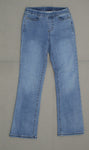 Features: pull-on style, wide elastic waistband, two faux front pockets, one coin pocket, two functional back pockets, four rivets at front pockets