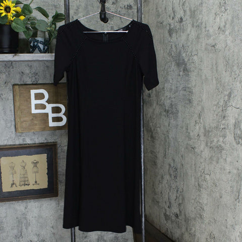 Features: elbow-length raglan sleeves with faux pearl trim, scoop neckline, front and back princess seams