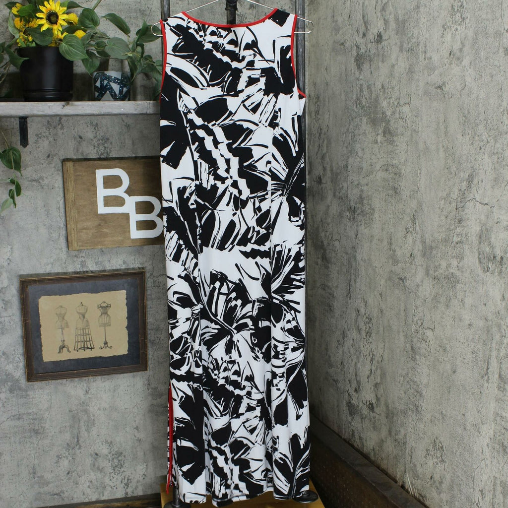 With a keyhole cutout, palm print, and contrasting trim, this sleeveless maxi dress will be in heavy rotation all season long.