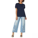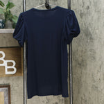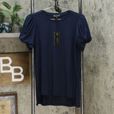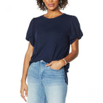 A twist in the sleeves adds a pretty pouf just enough to create an interesting silhouette that sets this top apart from your other short-sleeve tees.
