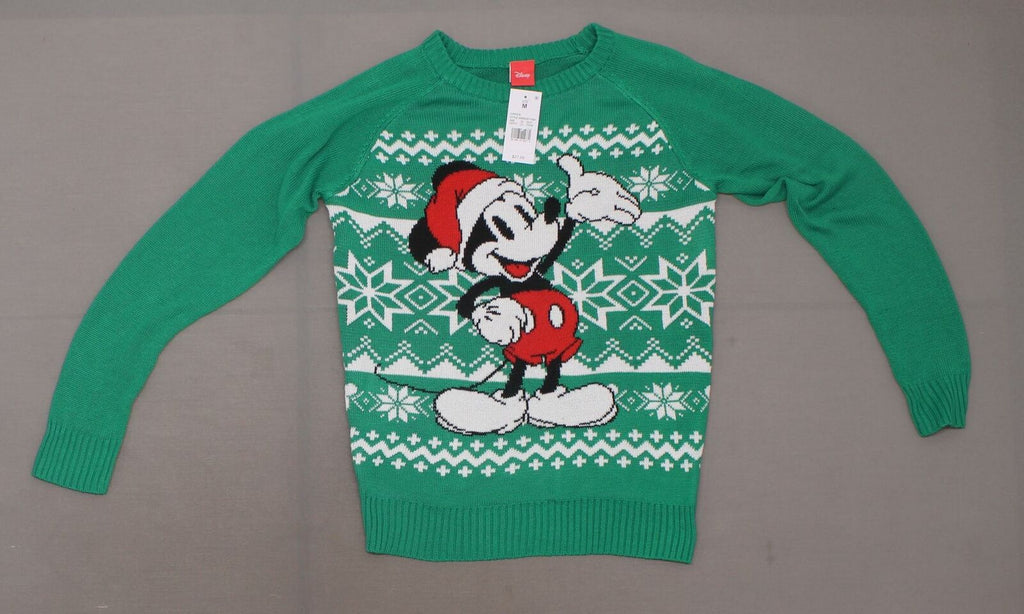 Fair isle pattern sweater with a Santa Mickey Mouse.