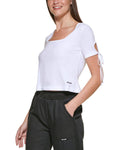 Dkny Jeans Women's Cropped Tied-Sleeve T-Shirt E22F8HIG White XL