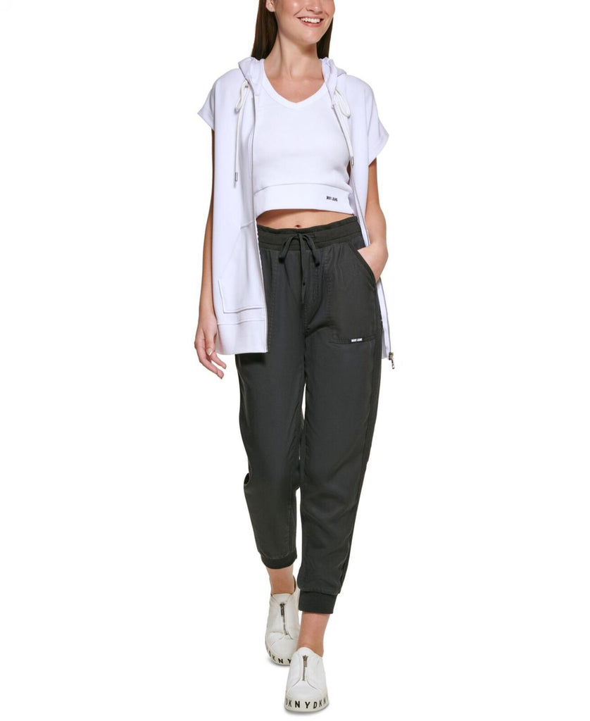 An effortless grab-and-go layer for those always on the move, this sleeveless drawstring hoodie from Dkny Jeans promises undeniable comfort.