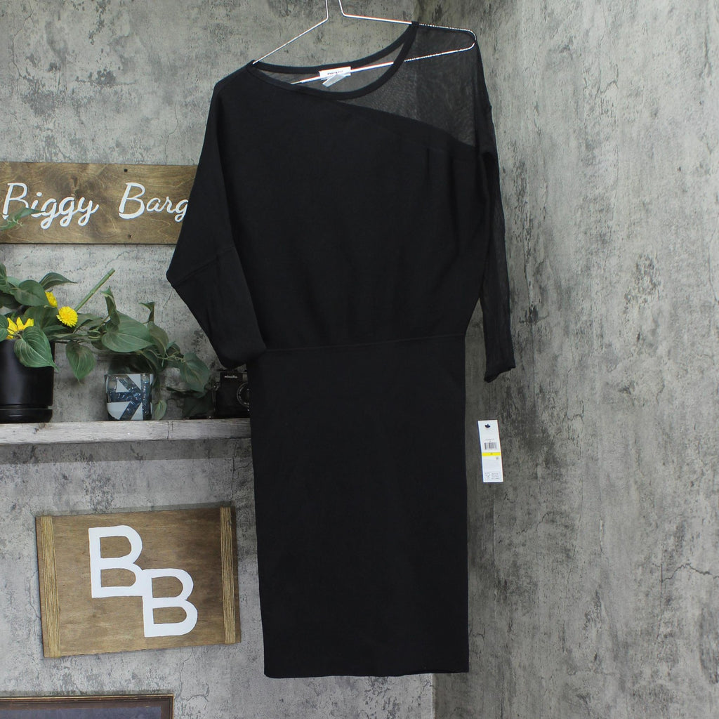 DKNY Womens Asymmetrical Sweater Mesh Sleeve Dress DD4HNC35 Black M