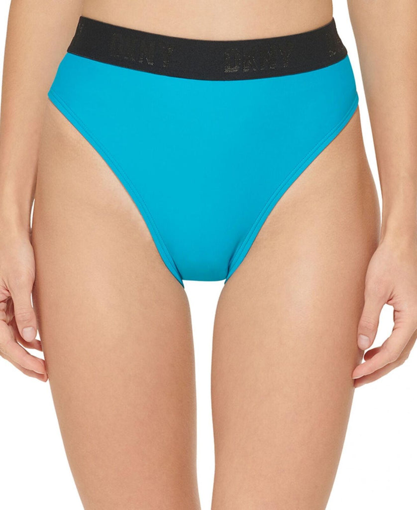 A logo-tape waistband lends a sporty touch to these high-waist bikini bottoms from DKNY. Sits at waist
