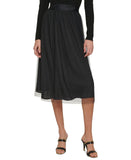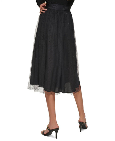 Smart tailoring in a mixed media design completes this transitional A-line skirt by Dkny. Finished with a sleek logo-waistband and elegant studded detail.