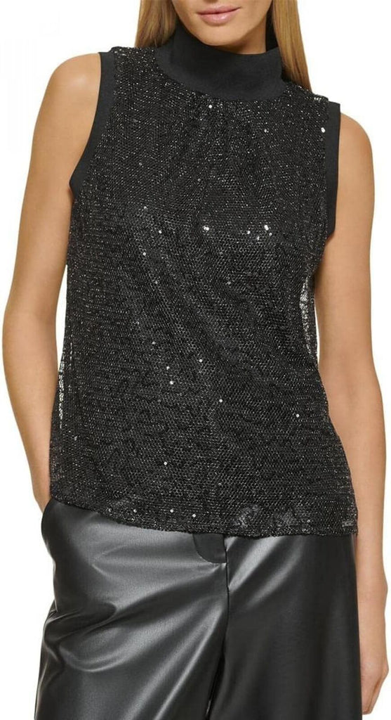 Never miss your chance to shine with this sleeveless sequin turtleneck from DKNY