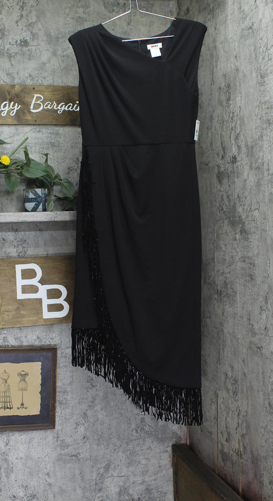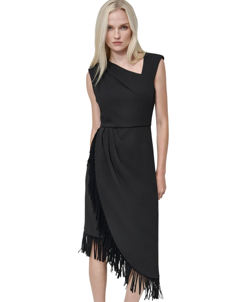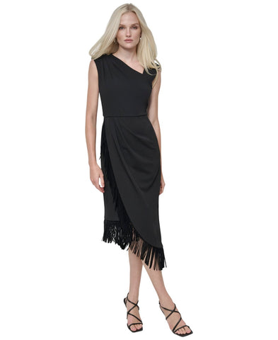 Add a touch of edge to your formal attire with this asymmetrical cocktail dress from Dkny, finished with flirty fringe trim.
