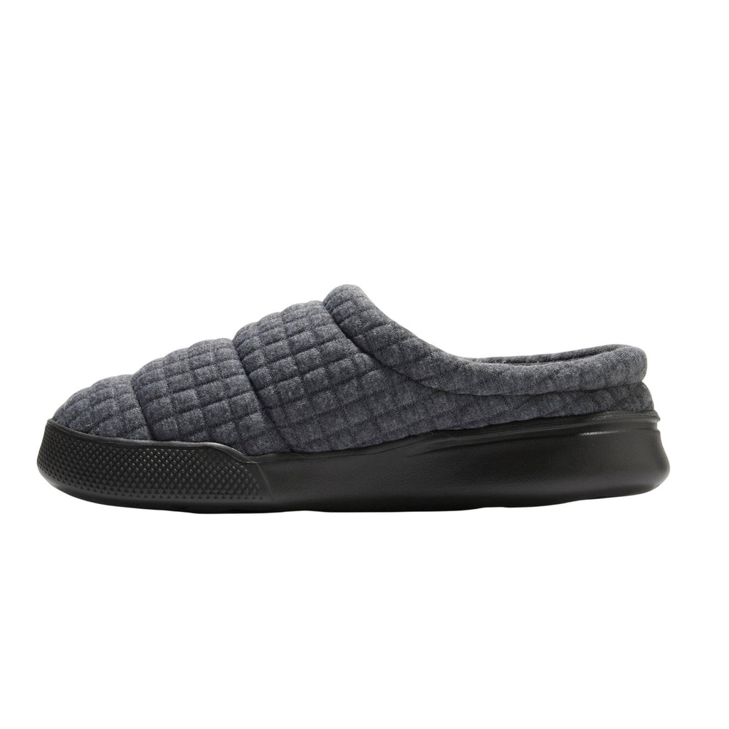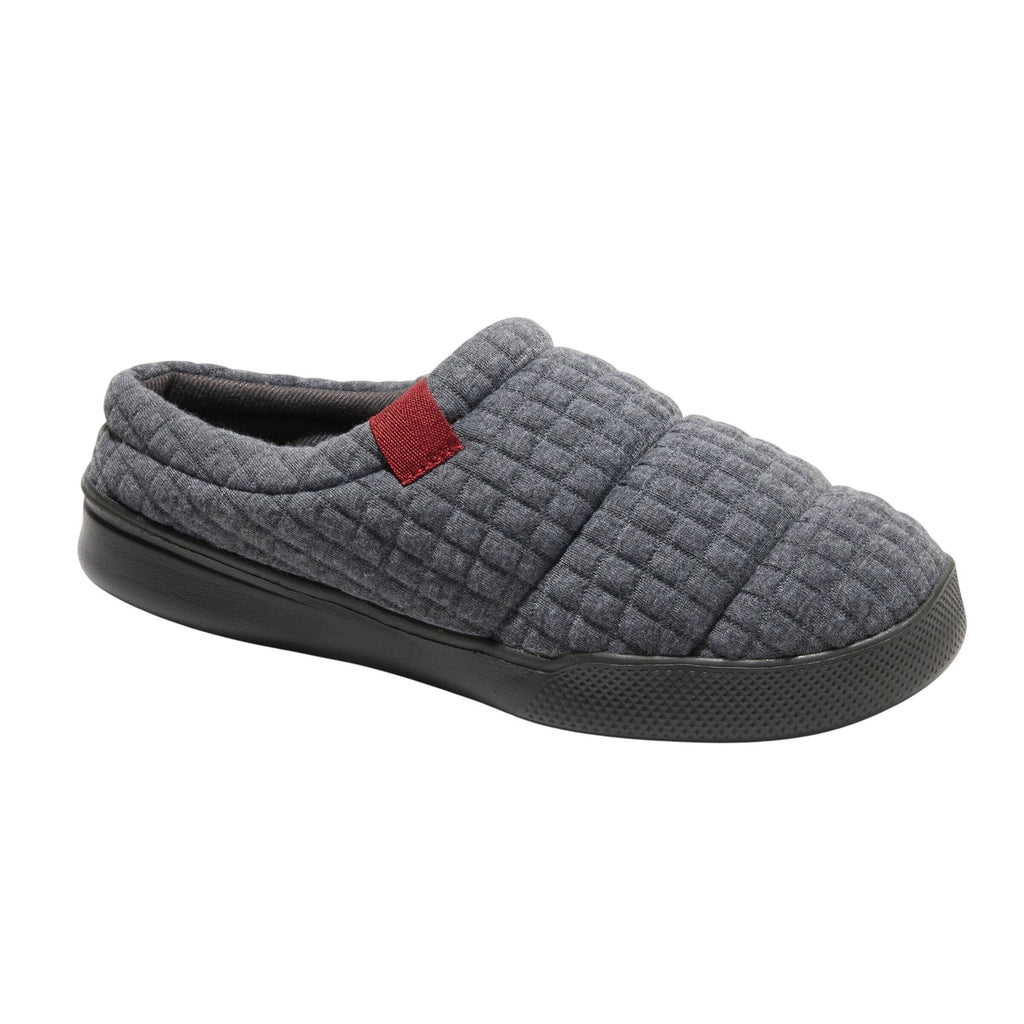 You deserve a break; and with cushioned memory foam insoles, supersoft flannel lining, and innovative no-sweat DF Adapt technology promising breathable comfort, these slippers are the perfect pick no matter the weather. Easy on/off silhouettes offer added convenience, while the machine washable material ensures your new favorite slippers are easy to keep fresh for a long time to come. Plush jersey upper with twill tape detail. Flannel lining and plush terry sock. No Sweat Comfort- These slippers feature breathable, temperature regulating DF Adapt technology, essential for keeping feet dry, never sweaty all day long. Machine washable for long lasting freshness. Cushioned insole with memory foam comfort.Indoor/outdoor outsole. Size Guide for Men's Shoe Sizes: S: 7-8, M: 9-10, L: 11-12, XL: 13-14. If your measurements are in between those listed, pick the next larger size. Sizing: Mens Care and Cleaning: Machine Washable, Dry Flat Footwear Lining Material: 100% Polyester Construction: Cushioned Insole Footwear Insole Material: 100% Polyester Features: Slip On Toe Style: Round Toe Footwear Upper Material: 100% Polyester Footwear Outsole Material: 40% EVA (Ethylene Vinyl Acetate) and 60% Polyester Heel: No Heel Shoe Width: Medium Footwear toe openness: Closed Toe Footwear outsole details: Indoor/Outdoor Outsole