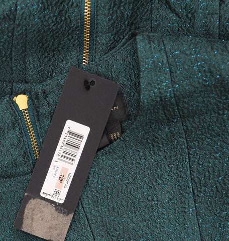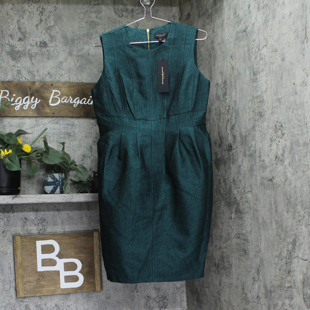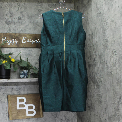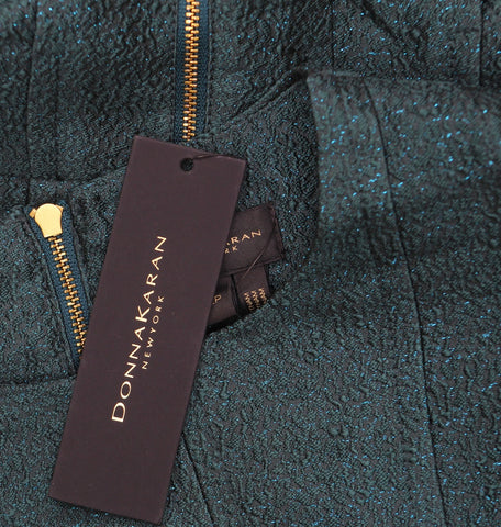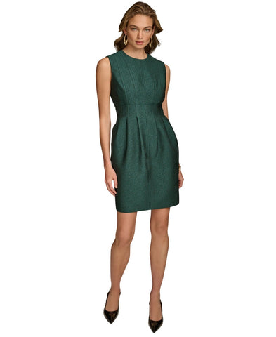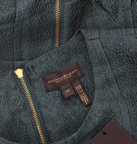Donna Karan Womens Petite Pleated Metallic Jacquard Dress Spruce Green 12P