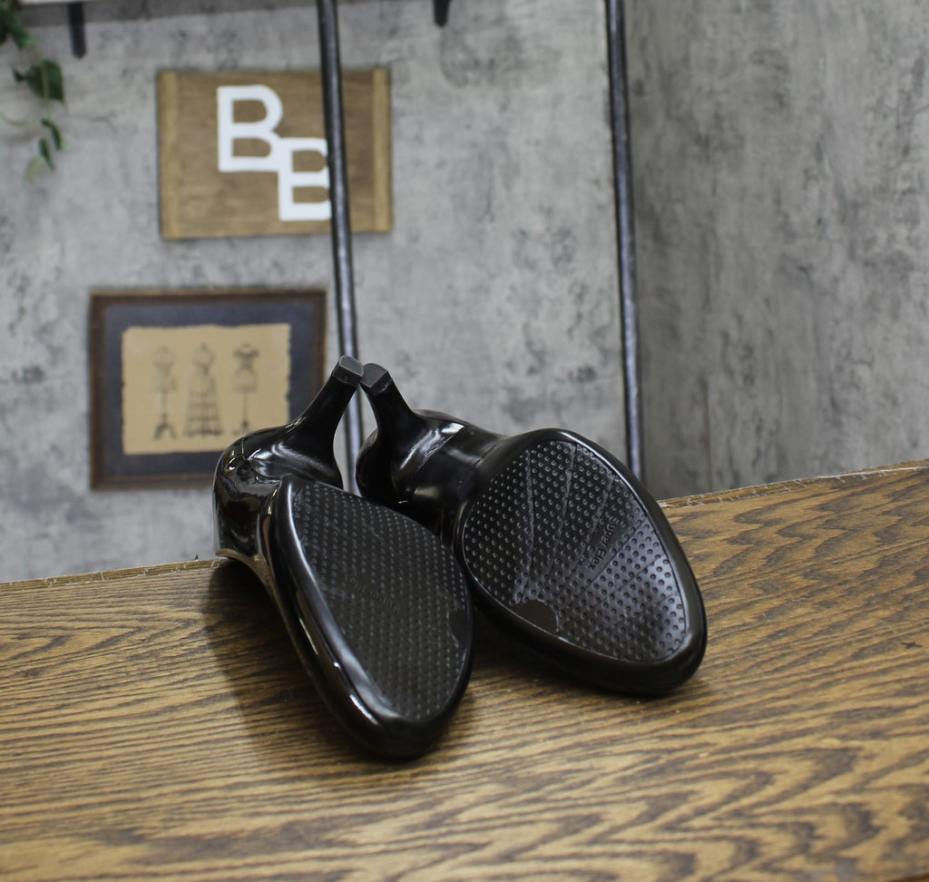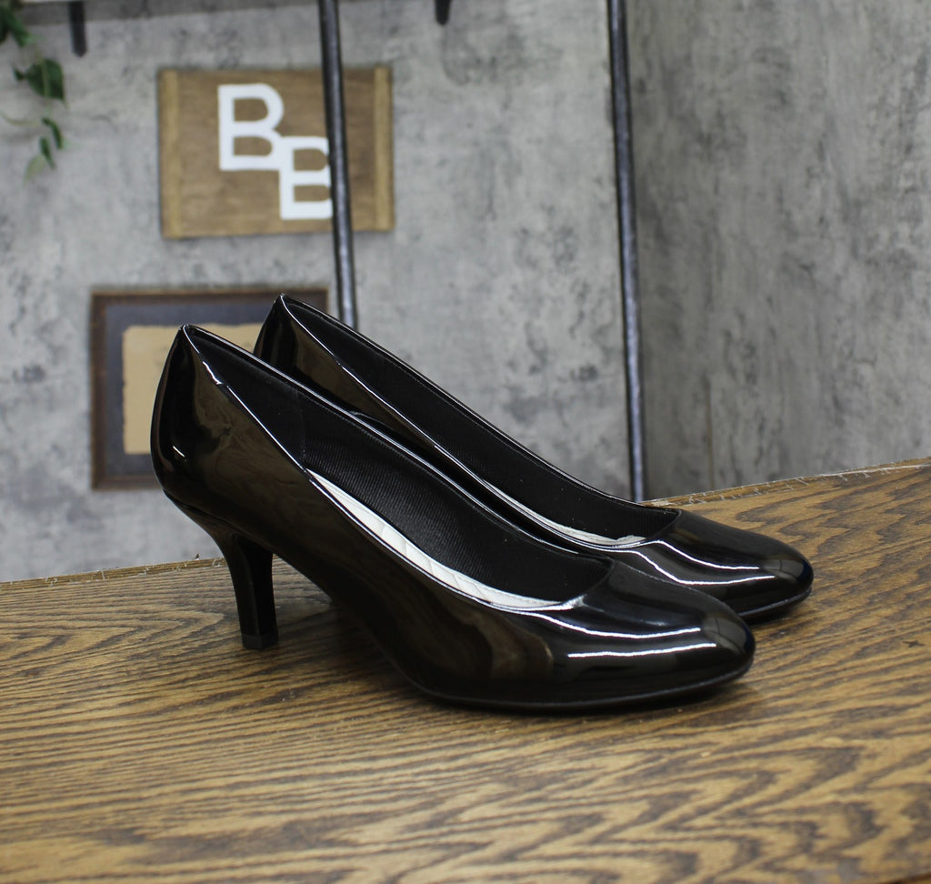 Round-toe dress pump featuring comfort sock and flexible outsole